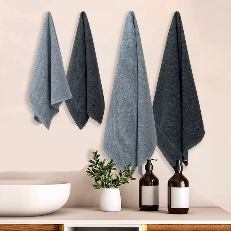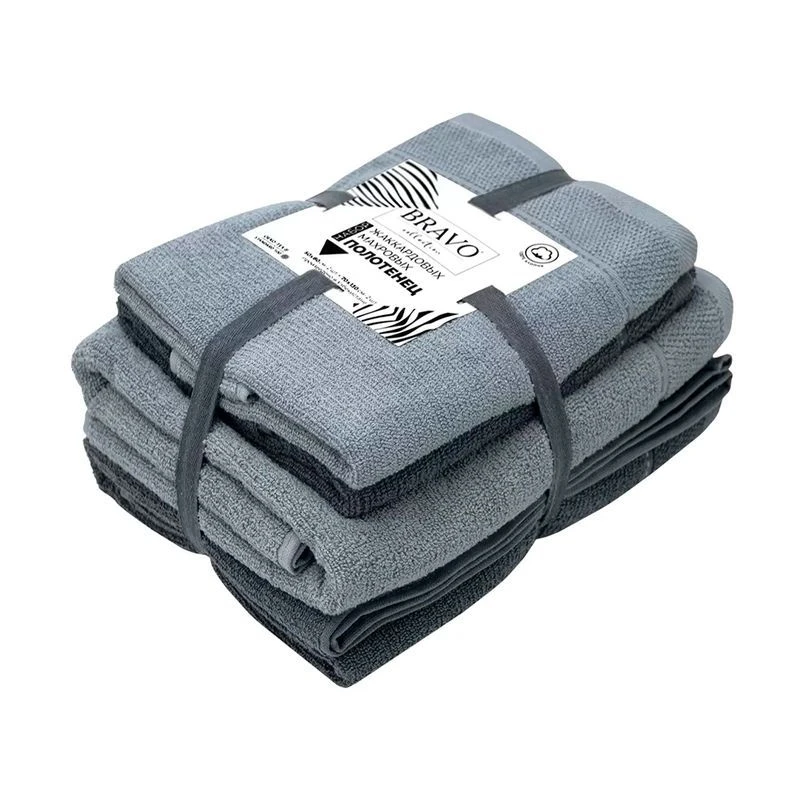 Набор из 4 махровых полотенец в подарочной упаковке. Полотенца жаккардовые, гладкокрашеные, произведены в Узбекистане из 100% хлопка. В наборе 2 полотенца 50*80см и 2 полотенца 70*130см.