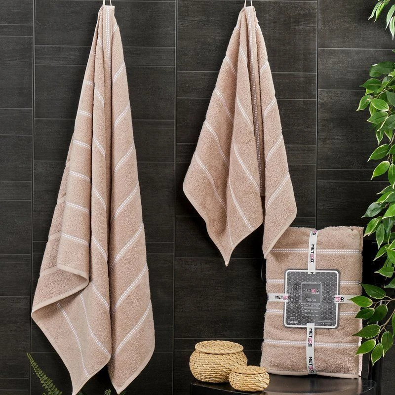 Набор полотенец имеет классический банный размер 50х90 и 70х140. Изготовлен из 100% хлопка. Плотность 480 г-м2.-это самый оптимальный вариант. Оно не тонкое и не толстое. Высота ворса 5мм, хорошо впитывает влагу и быстро сохнет,имеет высокую износостойкость и каждой стиркой махра будет становиться всё пушистее. Мягкое, лёгкое,практичное и удобное, имеет средний объема,благодаря чему не сваляется. Прослужит долго и станет незаменимым и важным предметом гигиены. Натуральный состав надёжный и абсолютно безопасен для любого человека, гипоаллергенно и не раздражает кожу.