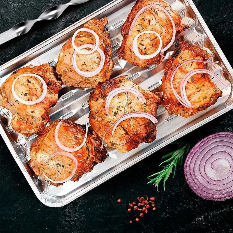 Алюминиевые формы для барбекю предназначены для приготовления блюд на мангалах и жаровнях. Отверстия, расположенные на дне формы, обеспечивают оптимальную циркуляцию воздуха, благодаря чему блюдо получается ароматным и сочным. Формы изготовлены из жаропрочной пищевой фольги. Можно одновременно готовить овощи и мясо. Уникальная конструкция максимально снижает риск подгорания продукта.