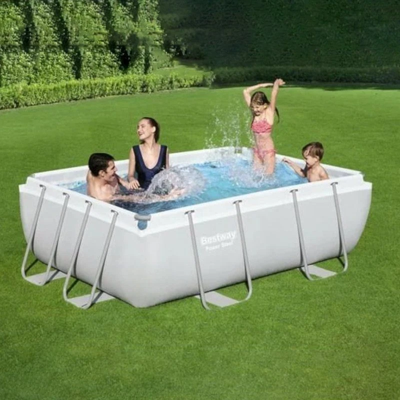 Прямоугольный каркасный бассейн Bestway 56629 отличается высокой прочностью и устойчивостью. Чаша выполнена из высококачественного трехслойного ПВХ: два слоя плотного винила и между ними сетка из полиэстера для особой прочности. Цвет чаши бассейна снаружи светло-серый, внутренняя поверхность имеет расцветку под мозаику. Каркас металлический, покрытый предотвращающим появление коррозии слоем пластика.