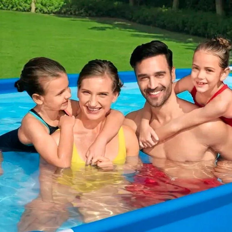 Бассейн прямоугольной формы "Bestway Steel Pro Frame Pool 56411" размером 300 х 201 х 66 см принесет радость и удовольствие в жаркие летние дни вам и вашей семье. Бассейн с металическим каркасом, который собирается быстро и без применения каких-либо дополнительных инструментов. Металлический каркас состоит из соединительных уголков, трубок-перемычек и стоек. Все детали окрашены и устойчивы к истираниям и ржавчине. Защитные соединители предотвращают повреждения от контакта металла с металлом, вызывающего ржавчину. Прочный лайнер бассейна изготовлен из износостойкого материала DuraPlus – сверхпрочного трехслойного армированного материала для повышения прочности и проколостойкости. DuraPlus на 15% более устойчив к разрыву, на 33% более устойчив к растяжению и на 83% более устойчив к проколам, чем стандартный ПВХ, что гарантирует, что ваш бассейн будет служить вам лето за летом. Бассейн снизу оборудован сливным клапаном. Слить воду можно в любое удобное для Вас место. Характеристики: Длина: 300 см. Ширина: 201 см. Высота: 66 см. Объём воды (при наполнении бассейна на 90%): 3300 л. Материал чаши бассейна: 3-х слойный ПВХ, армированный сеткой из полиэстера. Цвет бассейна: серый. Каркас: металлические окрашенные трубки. Фильтрующий картриджный насос производительностью 1249 л-ч. Инструкция на русском языке. Вес: 19.4 кг. Комплектация: Чаша бассейна - 1 шт; Каркас бассейна (металлические трубки) - 1 комплект; Фильтрующий картриджный насос для очистки воды 58381, производительностью: 1249 л-ч - 1 шт; Сменный картридж "I - 58093" (установлен в насосе) - 1 шт; Гофрированные шланги 32 мм для подключения системы - 2 шт; Хомуты для фиксации шлангов - 4 шт; Входной и выпусной соединители для подключения оборудования - 1 комплект; Сливной клапан (установлен в бассейне) - 1 шт; Переходник для сливного клапана - 1 шт; Ремонтный комплект - 1 шт.