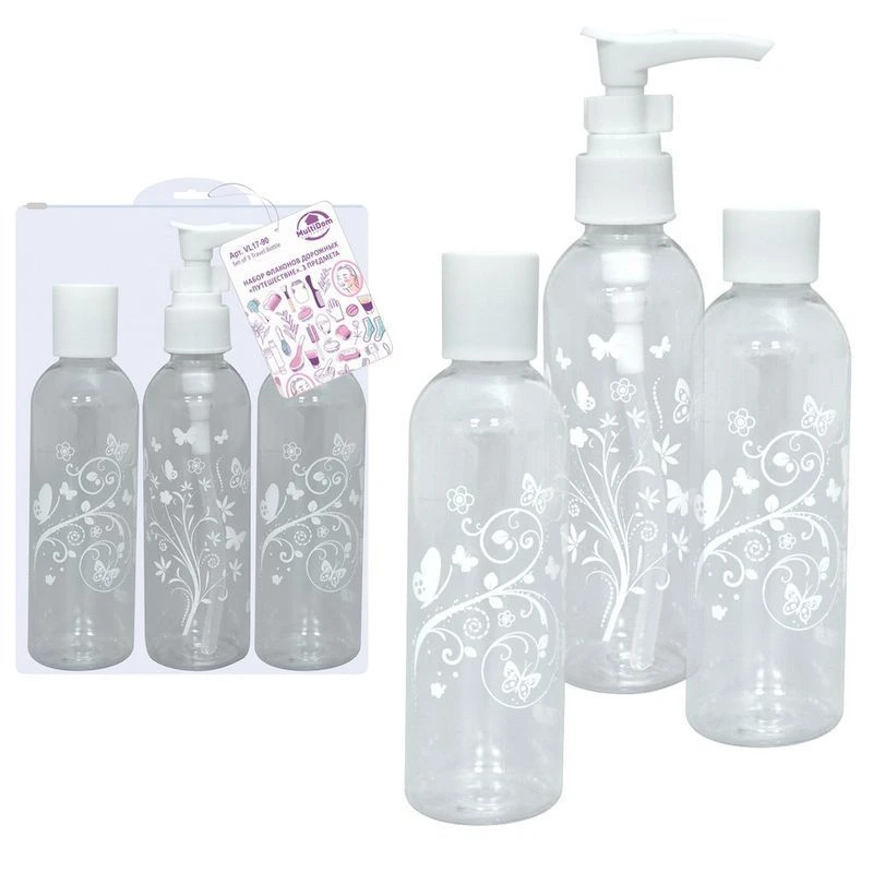 Набор используется для хранения и транспортировки косметических средств, необходимых вам в дороге, отпуске, на природе, в бассейне, тренажёрном зале. Больше нет необходимости возить с собой большие и тяжёлые бутыли. Просто наполните дорожные флаконы вашими любимыми, косметическими средствами и они всегда будут под рукой. Идеально подойдут для шампуня, бальзама для волос, тоника, геля для душа, геля для умывания, крема, лосьона.