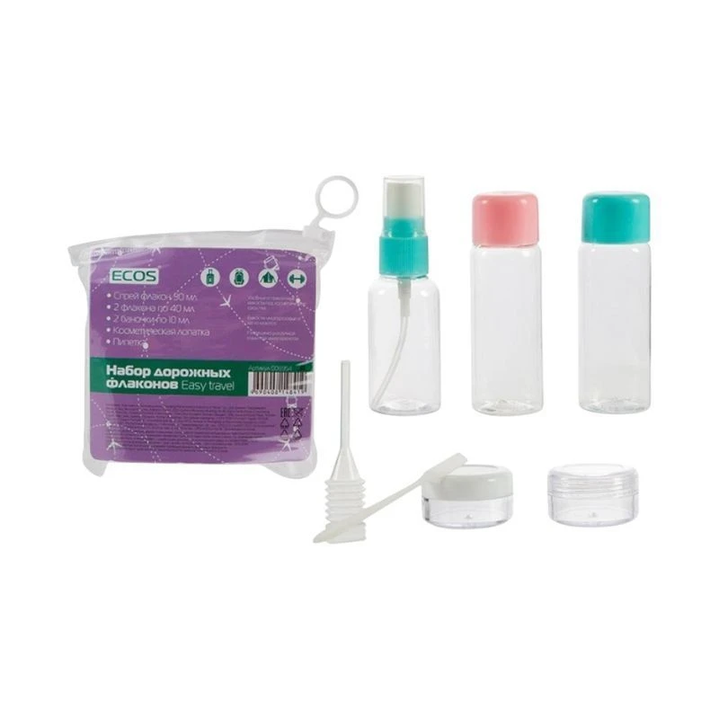 Емкости многоразовые и легко моются. Набор упакован в косметичку с пластиковым зиппером.