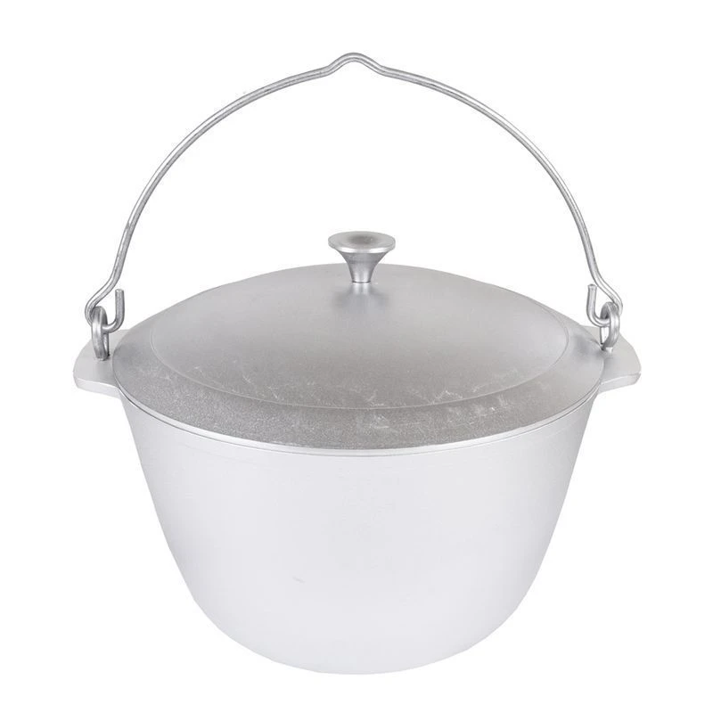 Котел изготавливается из пищевых алюминиевых сплавов методом кокильного литья. Это самый качественный и экологически чистый способ изготовления литой толстостенной посуды. В казане с толстыми стенками обеспечивается равномерный нагрев содержимого, благодаря чему пища не пригорает.