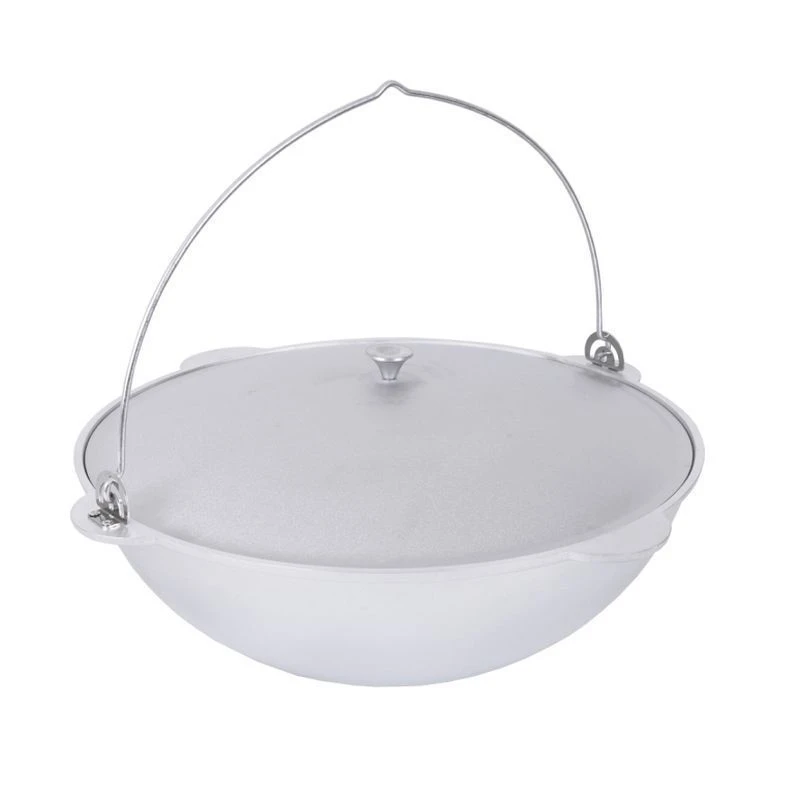 Котел изготавливается из пищевых алюминиевых сплавов методом кокильного литья. Это самый качественный и экологически чистый способ изготовления литой толстостенной посуды. В казане с толстыми стенками обеспечивается равномерный нагрев содержимого, благодаря чему пища не пригорает.