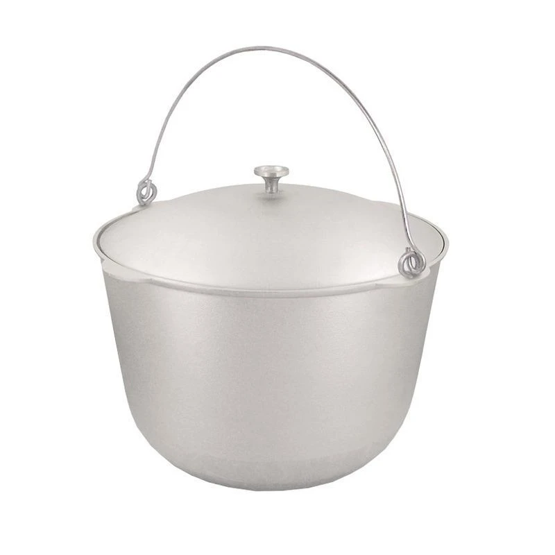Котел изготавливается из пищевых алюминиевых сплавов методом кокильного литья. Это самый качественный и экологически чистый способ изготовления литой толстостенной посуды. В казане с толстыми стенками обеспечивается равномерный нагрев содержимого, благодаря чему пища не пригорает.