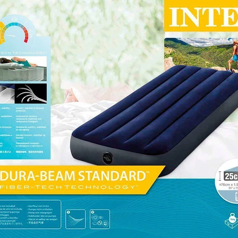 Матрасы Intex этого модельного ряда имеют ворсистое, очень приятное на ощупь верхнее покрытие. В матрасе использована конструкция Dura-Beam с Fiber -Tech. Уникальность технологии заклюяается в том, что внутренние перегородки состоят из тысяч высокопрочных полиэфирных волокон, которые не растягиваются со временем, что обеспечивает невероятную долговечность и комфорт. Такая конструкция позволяет свести к минимуму проминание матраса и надолго сохранить его форму. Как бы сильно матрас не был надут, поверхность матраса всегда остается ровной, что делает отдых комфортным и приятным.