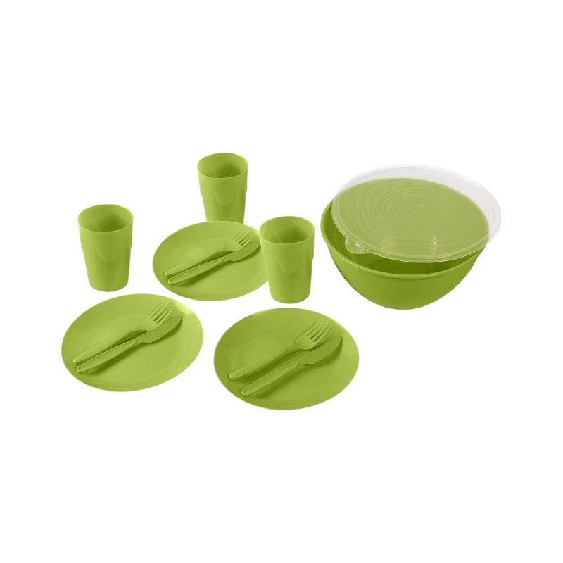 Набор для пикника «Трио» - отличный выбор для отдыха на природе для 3-х человек. Посуда выполнена из качественного пластика и разрешена для контакта с пищевыми продуктами – подойдет как для маринадов, так и для горячих и холодных закусок. Температурный режим: от -5°С до +70°С. Набор укомплектован 13 предметами: миска-салатница 3,2л с крышкой (1шт), тарелки плоские O20см (3шт), стаканы для холодных напитков (3шт), вилки (3шт), ножи (3шт). Многоразовая пластиковая посуда долговечна и подлежит вторичной переработке в отличие от одноразовой посуды.