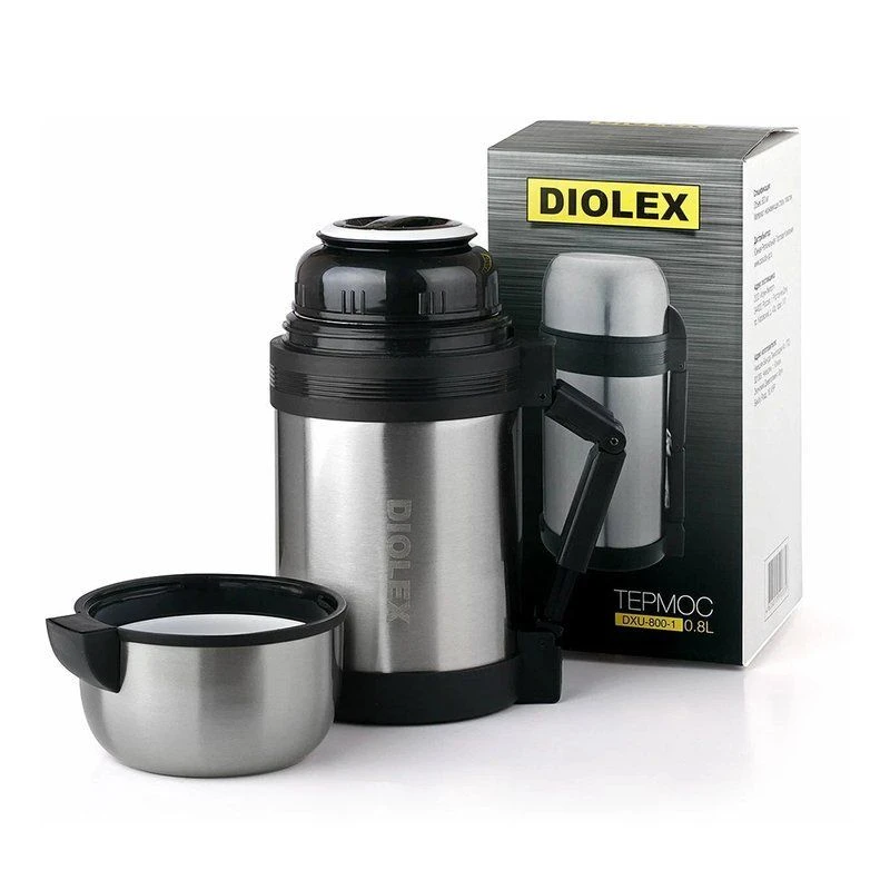 Термос Diolex DXU-800-1 сохраняет температуру напитков и еды до 12 часов для горячих и до 24 часов для холодных продуктов. Это делает его незаменимым аксессуаром для любителей активного отдыха, пикников и путешествий.