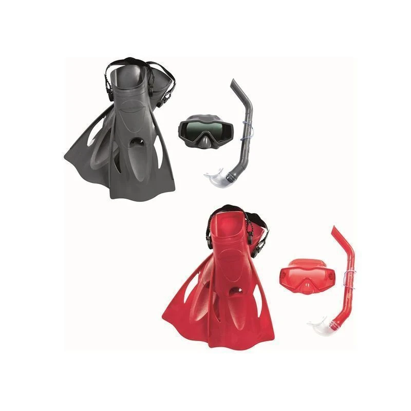 Набор для плавания. Маска с иллюминатором из закаленного стекла. Оправа из ударостойкой пластмассы. Обтюратор силикон. Трубка - Гибкие сегменты, дыхательный клапан, крепление для маски, волноотбойник яркого цвета, загубник силикон.