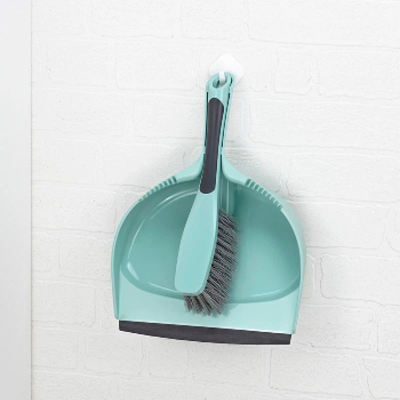 В комплекте есть совок оснащённый резинкой полукруглой формы, которая идеально прилегает к поверхности пола. Конструкция совка устроена так, что мусор легко собирается и не высыпается из ёмкости. Также на совке есть углубление для крепления набора на черенок щётки.