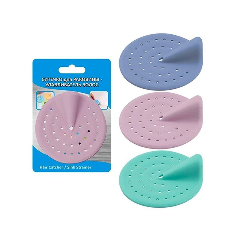 Ситечко для раковины используется для профилактики засоров: улавливает мусор и волосы и не позволяет им попадать в водосток. Изделие плотно фиксируется на месте присосками, а благодаря рельефной конструкции легко вынимается. Специальная форма приспособления исключает контакт рук с накопившимся мусором. Отверстия позволяют воде беспрепятственно протекать. При затрудненном течении воды достаточно очистить приспособление и снова установить его в сливное отверстие. Улавливатель волос изготовлен из TPR, диаметр изделия 7 см, высота 2 см.