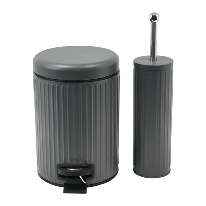В набор входит: ведро с педалью 5л 2,4*27,5*28,5см, ершик для унитаза 9,7*27,7см