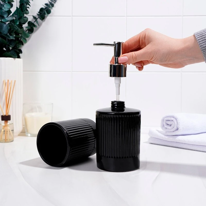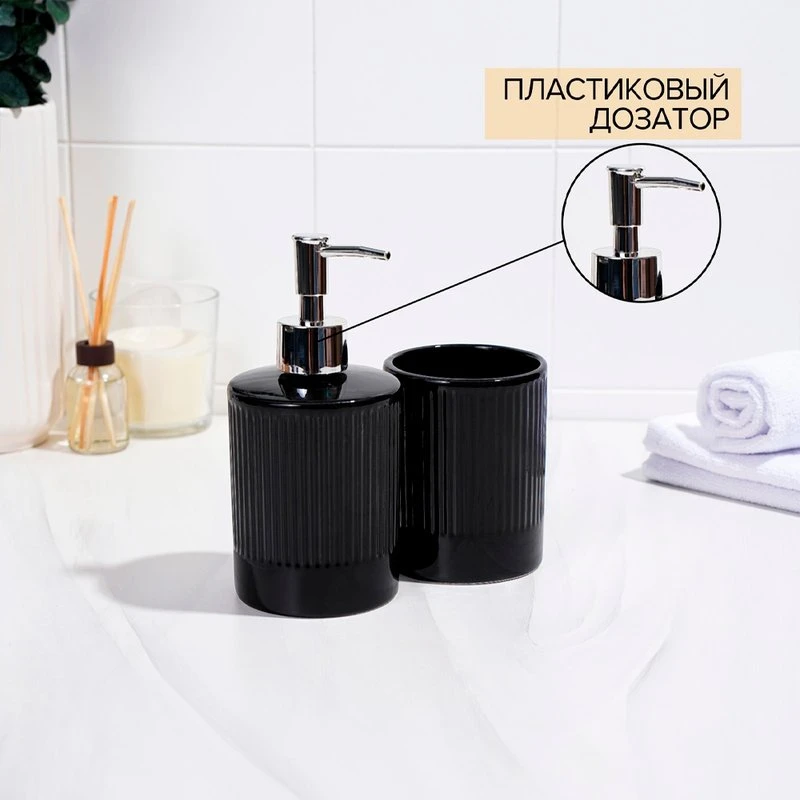 Набор аксессуаров организует пространство и станет стильным украшением Вашей ванной комнаты. За счет сдержанного дизайна данный керамический набор в ванную подойдет к любому дизайну ванной комнаты. Набор состоит из 2 предметов: дозатор, стакан.