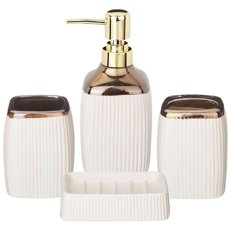 Дозатор для жидкого мыла 1 шт; Подставка-стакан 1 шт; Подставка для зубных щёток 1 шт; Мыльница для кускового мыла 1 шт.