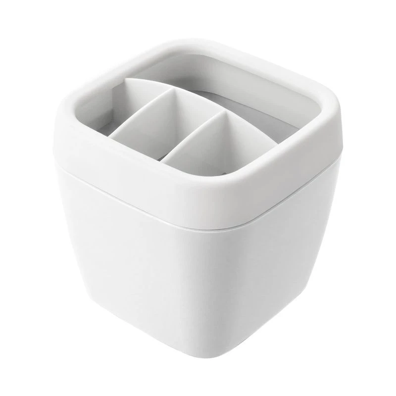 Органайзер позволит компактно разместить гигиенические принадлежности в ванной. Несколько отделений удобны для размещения зубных щеток, включая электрические зубные щетки. Есть специальное отделение для зубной пасты. Изделие влагостойкое и прочное. Конструкция разборная, проста в уходе и легко моется.