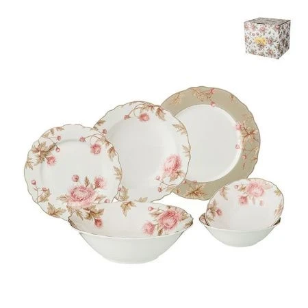 В коллекции представлены кружки, чайные пары, тарелки, чайники, сахарницы, розетки, вазочки, подставки и другие предметы.