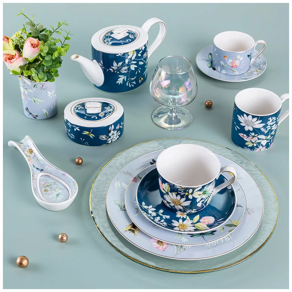 Чайный сервиз на 6 персон. В комплект входят чайник (950 мл), сахарница (350 мл), молочник (250 мл), 6 чашек (250 мл) и 6 блюдец.