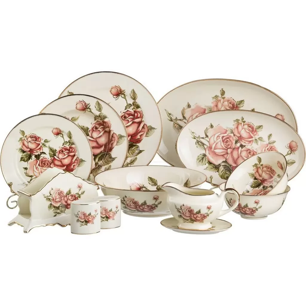 «Корейская роза» — серия посуды и декоративных изделий бренда Lefard. На изделиях изображены красные розы с контуром, прорисованным золотом.